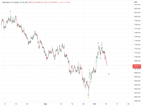 Ich gehe mal davon aus, dass die Welle 3 bei rund 1.730 $ beendet wurde und jetzt die Welle 4 läuft, die bei 1.700 $ bzw. ganz leicht darunter ihr Ende finden dürfte.