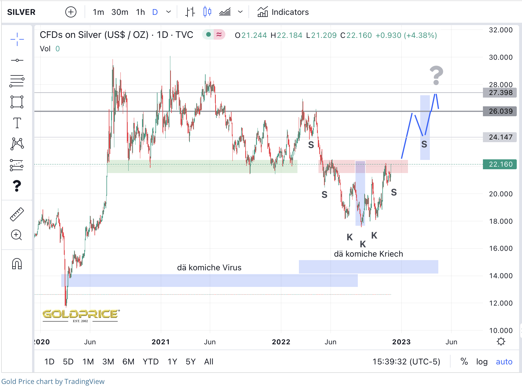 "Wir befinden uns jetzt in einem Stadium der permanenten Bankenrettung. Egal ob die Rettungsfonds für das Klima, Corona, die Gaspreisbremse, die Bundeswehr oder den Wiederaufbau der Ukraine aufgelegt werden. Die Banken werden über die Gewinnspanne bei der Vergabe der neuen Kredite permanent gerettet. Neue Rettungspakete "egal für was" müssen folgen, um den Kollaps der Banken zu vermeiden. Diese Kredite werden nie zurückbezahlt und finanzieren die Banken bis zur Währungsreform.""