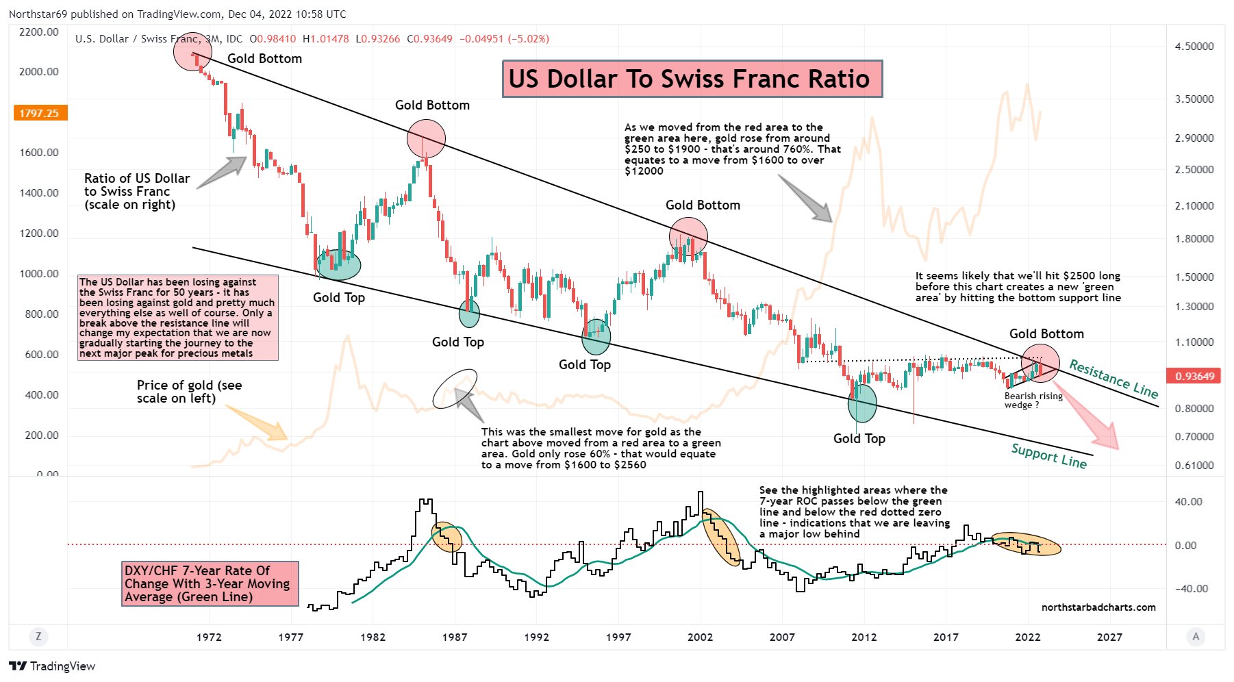 Ganz einfach : starker Dollar (Falschgeld) , Gold (Echtes Geld) neigt zu Schwäche, schwacher Dollar, Gold neigt zu Stärke. Das mit dem $/CHF Ratio ist nur eine Mystifizierung/Verschwurbelung/Wichtigtuerei. :whistling: