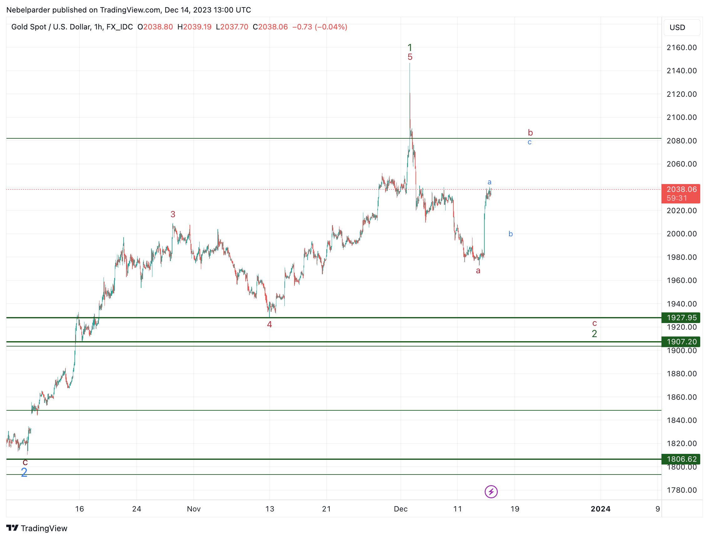Normalerweise wäre die a bei ca. 2.017 $ zu verordnen und da gab es auch eine Gegenbewegung. Diese war jedoch zu schwach für eine b, sodass es eher eine 4 der a gewesen sein könnte.