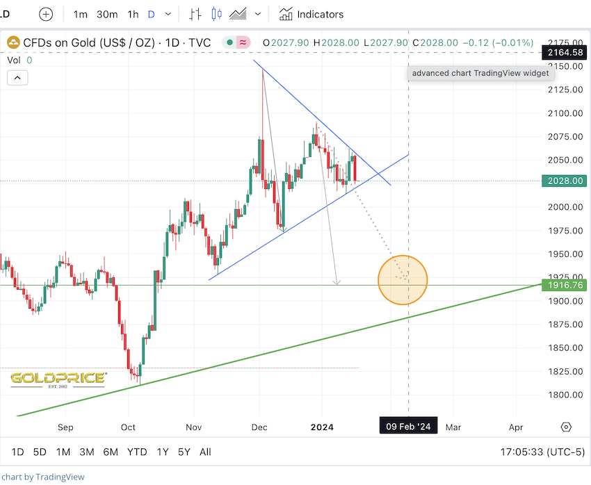 Der Gold in USD Tageschart, mit zwei ganz bestimmten Linien.
