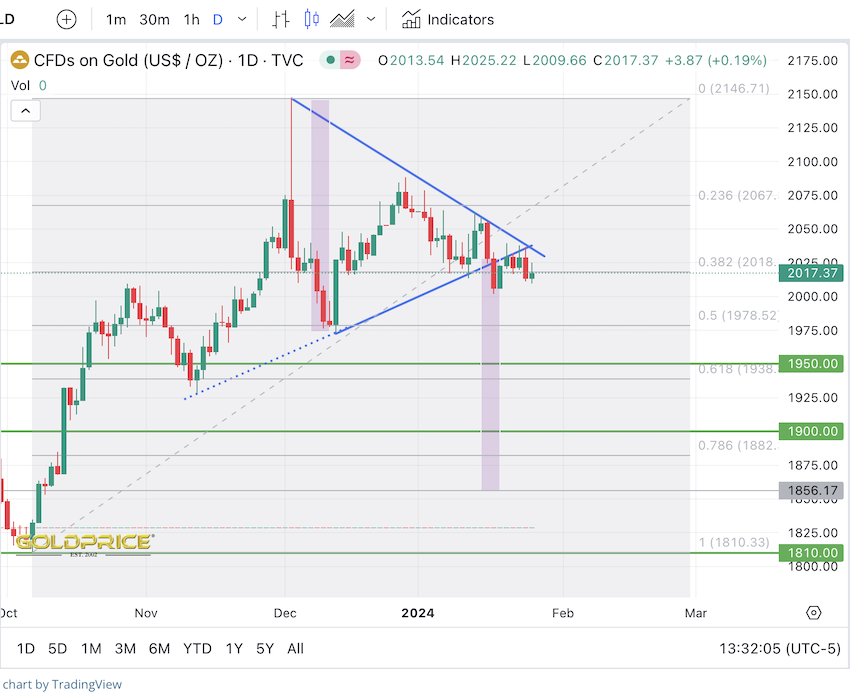 Darüberhinaus wird die Höhe der Formation geringer, der Zielbereich läge nur noch bei rund 1.850 $.