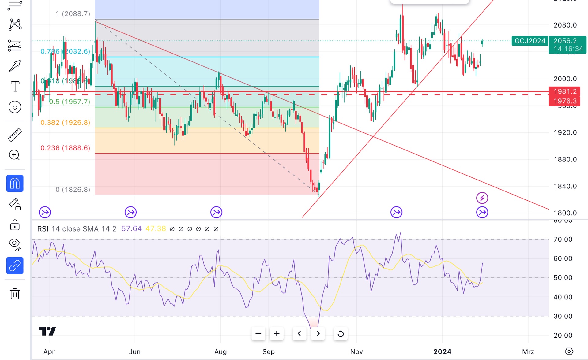 Sollte sie per Tagesschluss über der roten schrägen Linie enden, weiß ich nicht mehr so genau, wo ich nach der c suchen kann, dann wäre dieses ominöse Dreieck nach Norden verlassen worden...