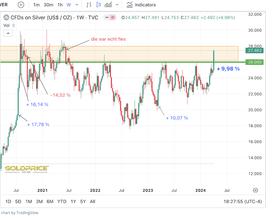 Gestern schrieb ich, bei Silber würde es spannend werden...