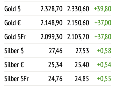 Zumindest konnten sich heute alle im $€SFr Währungsraum fast gleichermaßen über die Entwertung ihrer Zahlungsmittel erfreuen: