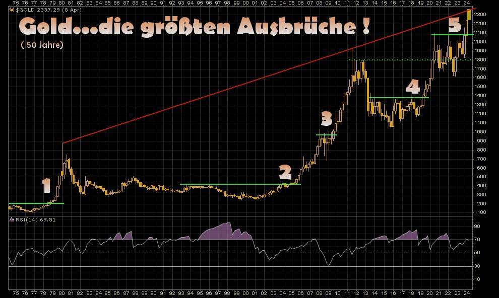 Ich denke und hoffe wir können nach dem Ausbruch der Minen jetzt mit einem mehrjährigen (zwei ? ) Aufwärtstrend rechnen.Wir könnten hier wirklich im Bereich der Morgendämmerung von etwas ganz ziemlich großem stehen. Es wird Rücksetzer geben. Auch längere Konsolidierungsphasen. Klar, mein Depot ist die letzten Tage auch regelrecht explodiert. Gewinnmitnahmen ? Ja, aber ganz vorsichtig und eher Underperformer verkaufen um Kapital zu schöpfen. Die Devise dürfte bis auf weiteres lauten: buy the dip , nicht sell the rallye !