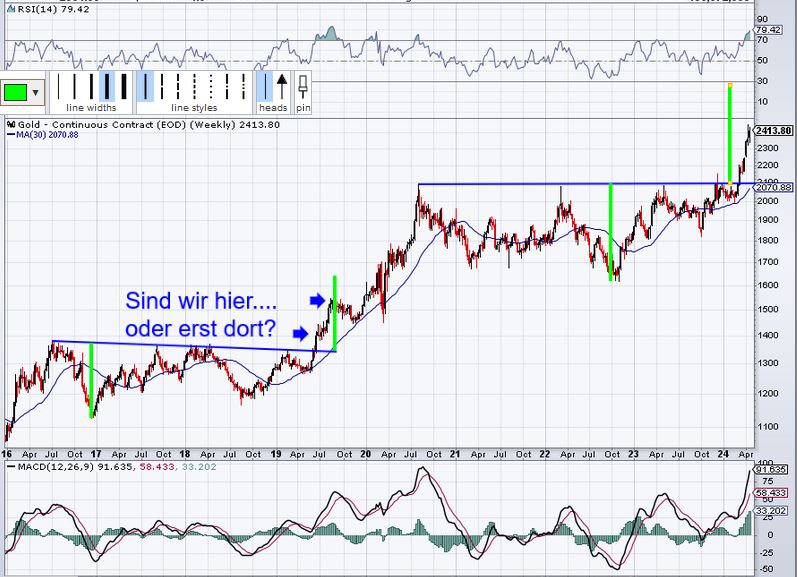 Nun, der Goldbulle ist jedenfalls offiziell, seit das Gold auch in der letzten, in der "erstvorderen" Währung, dem US-Dollar, auf neuen ATHs ist. Übrigens unter Eintreffen einer weiteren Vorhersage von MA, wenn ich richtig liege: Das Gold und der Dollar werden Beide steigen. Was beim Kriegsscheiß in Europa und unserer wirtschaftlichen Demontage nicht wundert. Da würde ich mich auch vom Acker machen, wenn ich Geld wäre.