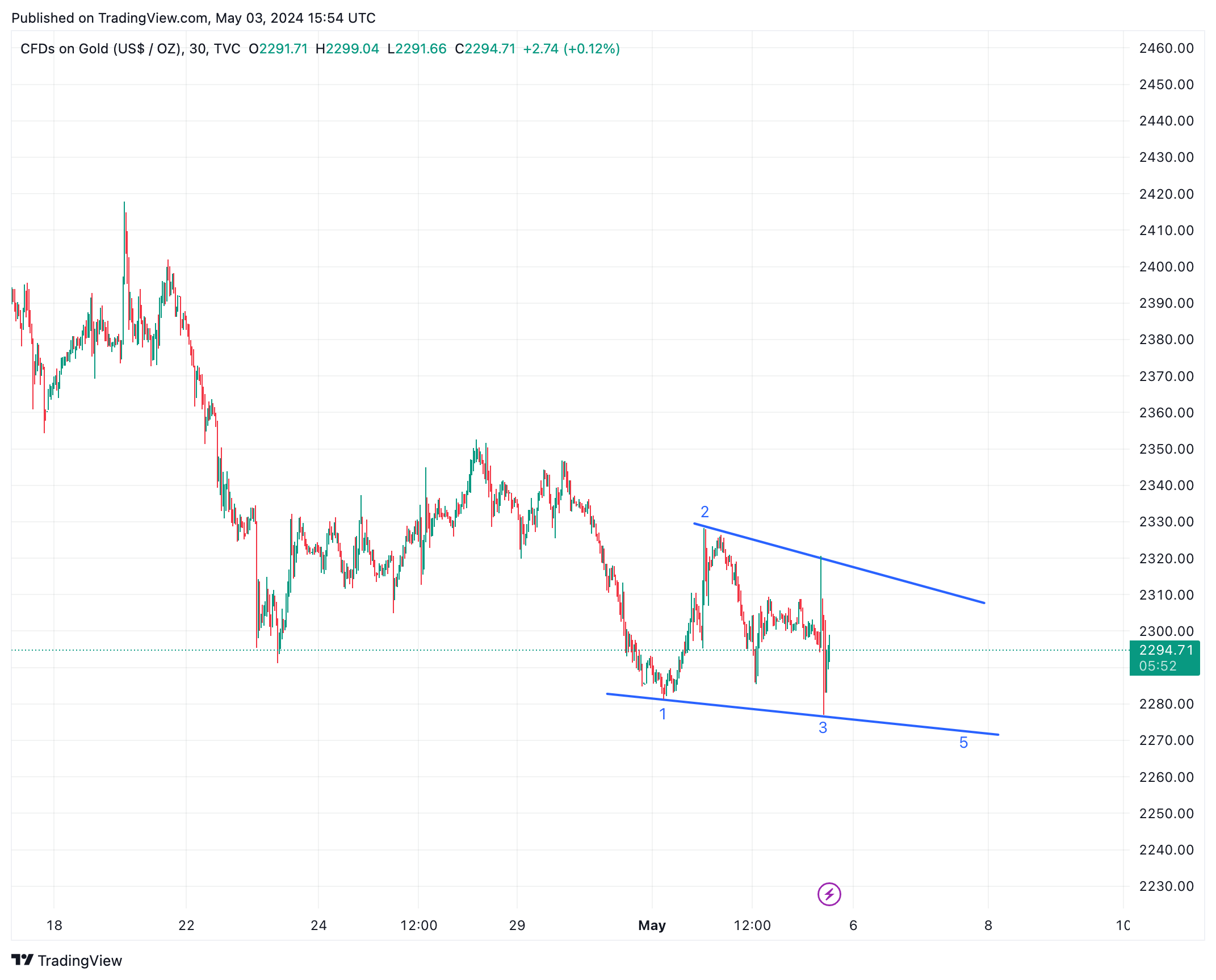 Es wurde mit 2.277 $ lediglich 4-5 $ unterhalb des letzten Tiefs vermutlich die 3 gesetzt.