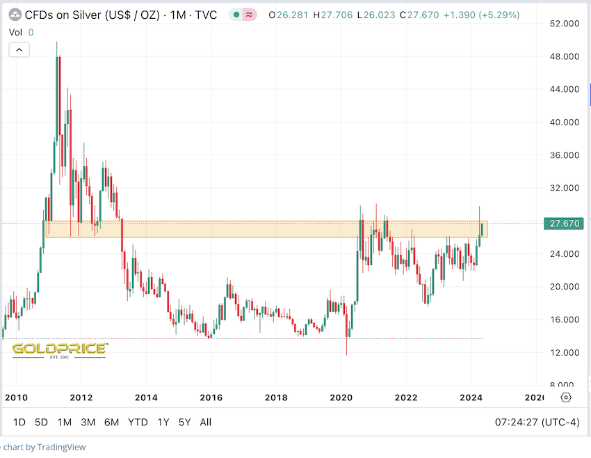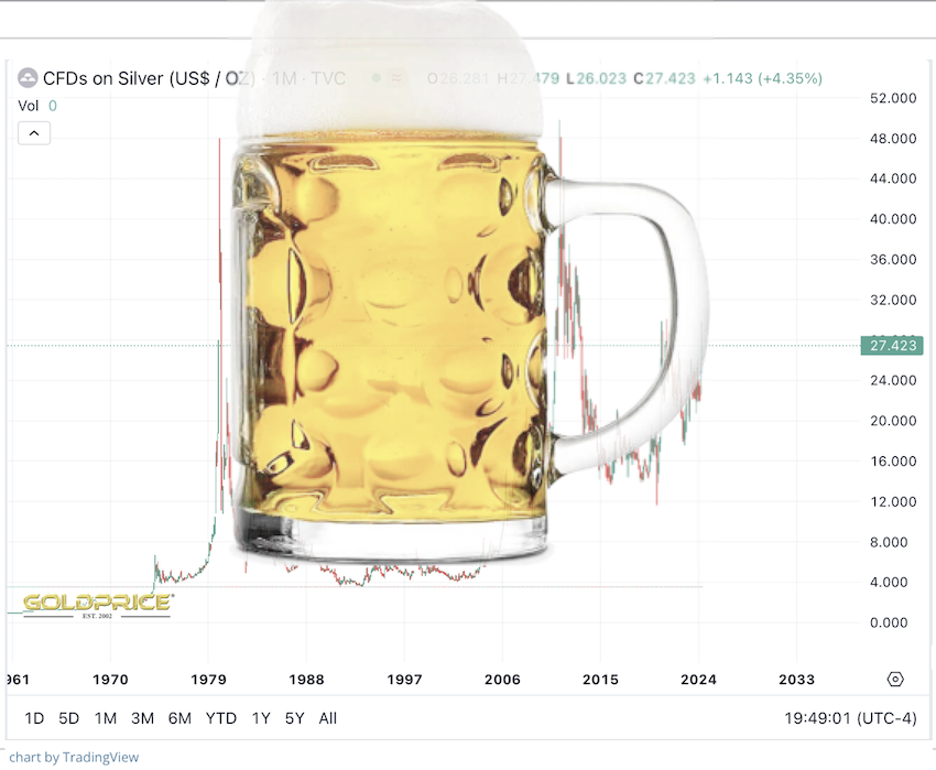 Derzeit ist das Maß bei Silber erst knapp halb voll, wenn ein anständiger Henkel an den Krug dran käme, und die Zapfanlage Druck drauf hat, schäumt`s wohl über...