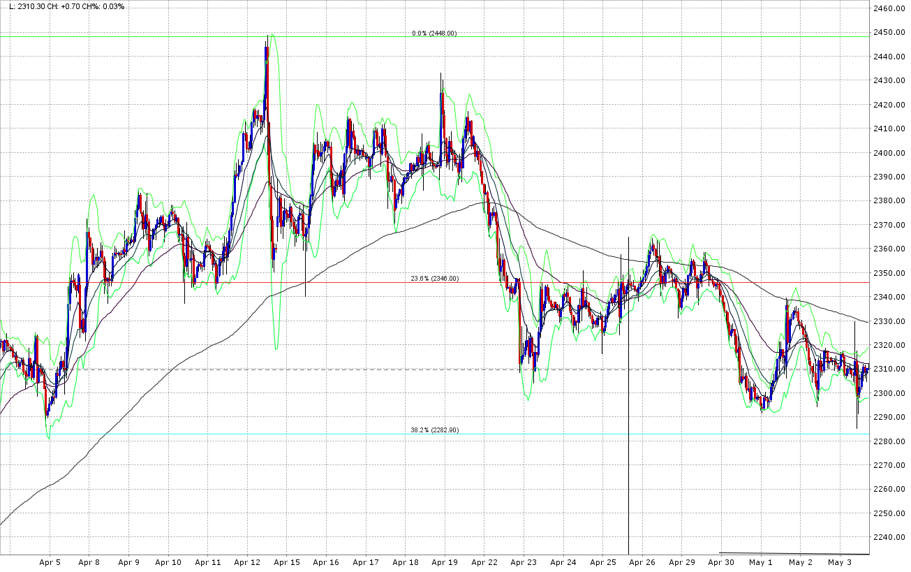 Erster Schritt somit morgen Gold im Plus, somit 50 EMA überwunden, zweiter Schritt dann die Überwindung des 200 EMA, gleichzeitig im Tageschart der 9 EMA. Oder eben es klappt nicht, dann nächste Unterstützungszone bei 2223 bis 2232.