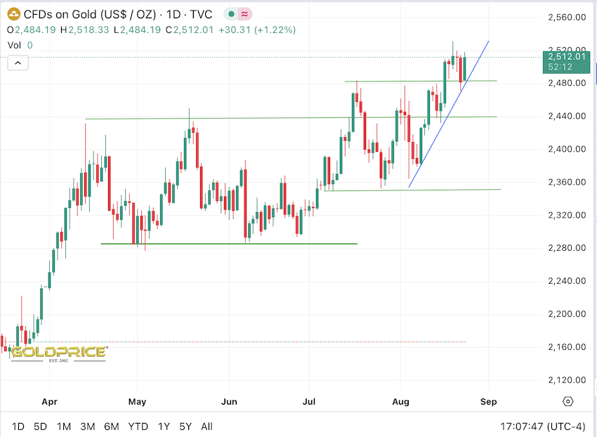 Korrespondierend dazu heute die ausführliche Analyse von Florian Grummes auf Goldseiten, mit der Erwartung einer möglicherweise scharfen Korrektur im September.
