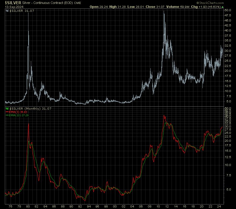 So ganz langfristige Betrachtungen sind natürlich nach chart- oder formationstechnischen Kriterien fragwürdig bis infaust. Ganz im Gegensatz zu kürzeren Zeitfenstern wo wirklich frappieren gute Ergebnisse erzielt werden können. Aber langfristig betrachtet geben , beispielsweise inflationsbereinigte Betrachtung oder langfristige Ratios doch einen ganz guten Anhaltspunkt darüber , was möglich ist . Möglichkeiten sagen natürlich nichts über Wahrscheinlichkeiten. Wobei ’reversion to the mean‘ schon soetwas wie naturgesetzlichen Charakter hat. Und die charttechnischen Betrachtungen/Beobachtungen der edlen Metalle müssen , selbstredend, immer im Kontext der Kenntnis der Fragilität unseres Schuldgeldsystems gesehen werden. In Kenntnis dessen kann der (ausreichend) physisch Investierte kurz und mittelfristige Markt- bzw. Preisschwankungen maximal entspannt betrachten und sich auch ’charttechnischen Spielereien‘ hingeben. Spielereien die für mich dennoch mehr als einen Funken ’Prognosequalität‘ beinhalten.