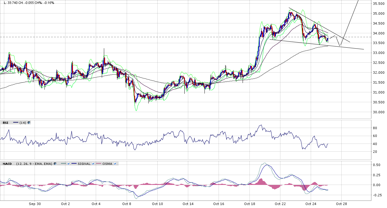Alleine aus diesen vier Faktoren bietet sich meiner Einschätzung nach zum Monatsende eine Korrektur in den Bereich 32,00 - 32,50 $ für Silber an.