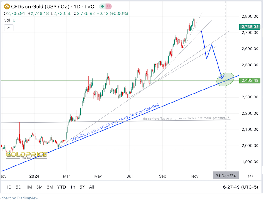 Die Minen sind auf Tagesbasis im guten neutralen bis leicht überverkautem Bereich. Auf Wochenbasis sind könnten wir aber etwas noch korrigieren. Guckt man sich den Goldpreis an, steht dringend eine Korrektur bevor. 100-200$ locker möglich, wäre teils gesund. Was machen die Minen? Weiter positiven Trend halten, oder wieder underperformnace?? Das wird die große Frage sein...laut charttechnik eher das erste, wäre ganz wichtig für das Jahr 2025, wo eigentlich die Gewinne bei den meisten Minen sprudeln sollten. Laut Schätzungen das stärkste Jahr.