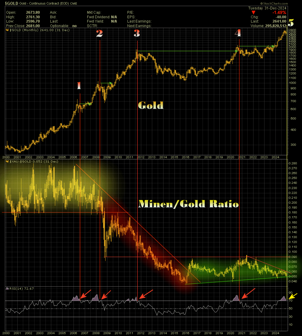 Gespannt bin ich auch ob das Minen/Gold Ratio den sehr zarten 'Aufwärtstrend' seit 2016 'verteidigen' können wird.