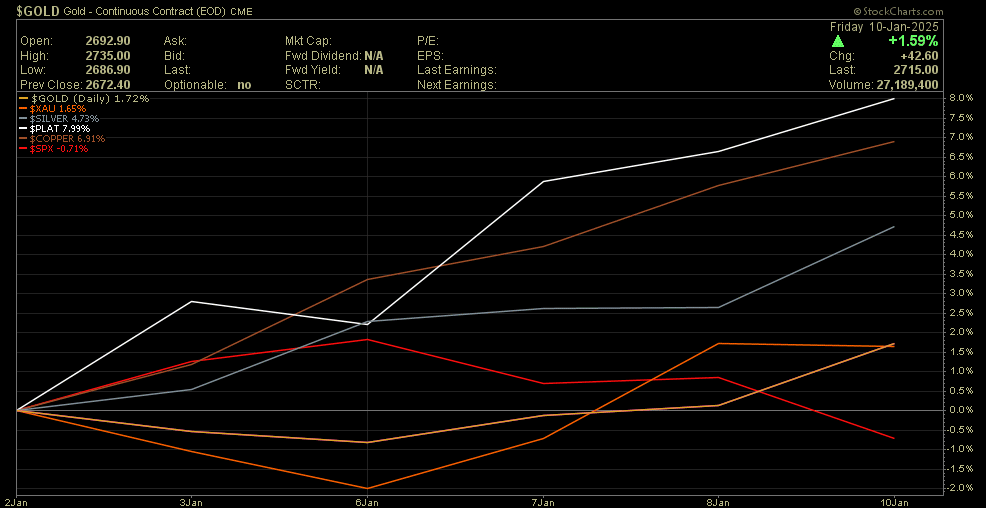 Der folgende Chart könnte eine Erklärung liefern. Gold befindet sich im Verhältnis zum S&P weiterhin im Abwärtstrend. Ein Ausbruch von Gold gegenüber dem S&P könnte den gesamten Sektor neu beleben."Capital Rotation event"
