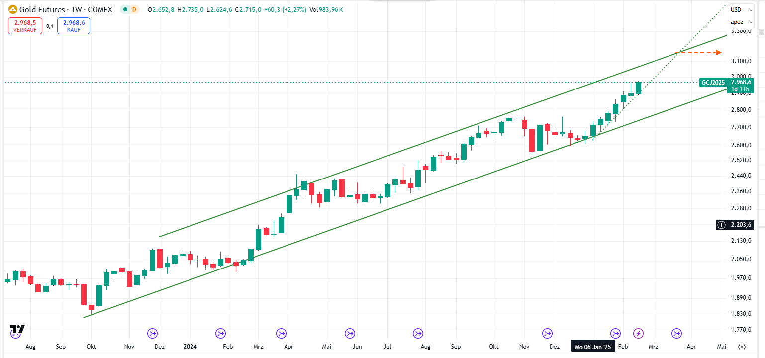 Es ging von rund 2.877 $ auf ca. 2.947 $. Dann gestern die kurze Korrektur auf 2.918 $.