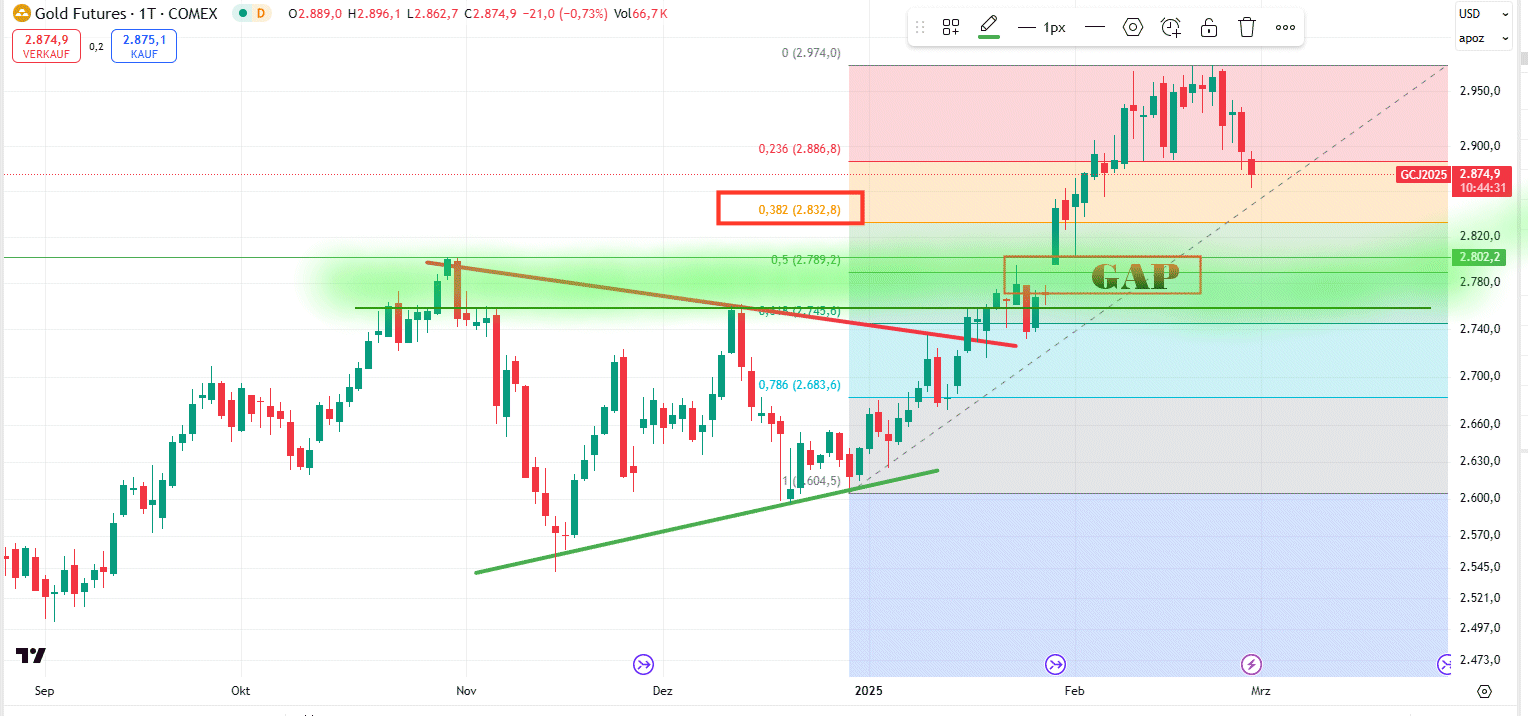 Hier der Goldpreis, schöner move..trend stimmt...kommen aber langsam im überkauften Bereich an. Was machen die Minen bei POG 2600-2800..??? Wieder 50% Korrektur?!