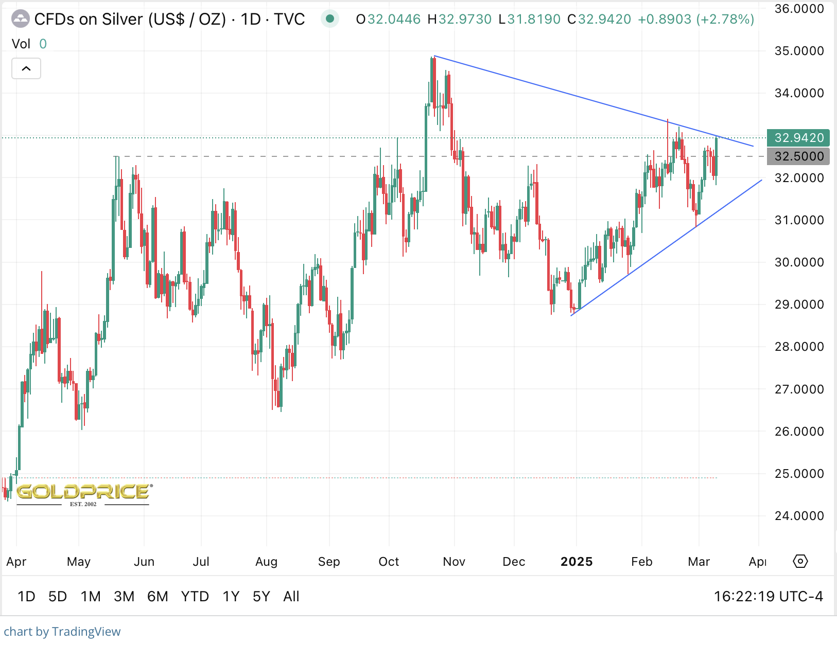 Mit fast 3% Tagesgewinn hat sich SILBER an die 33 $ förmlich rangeschmissen.
