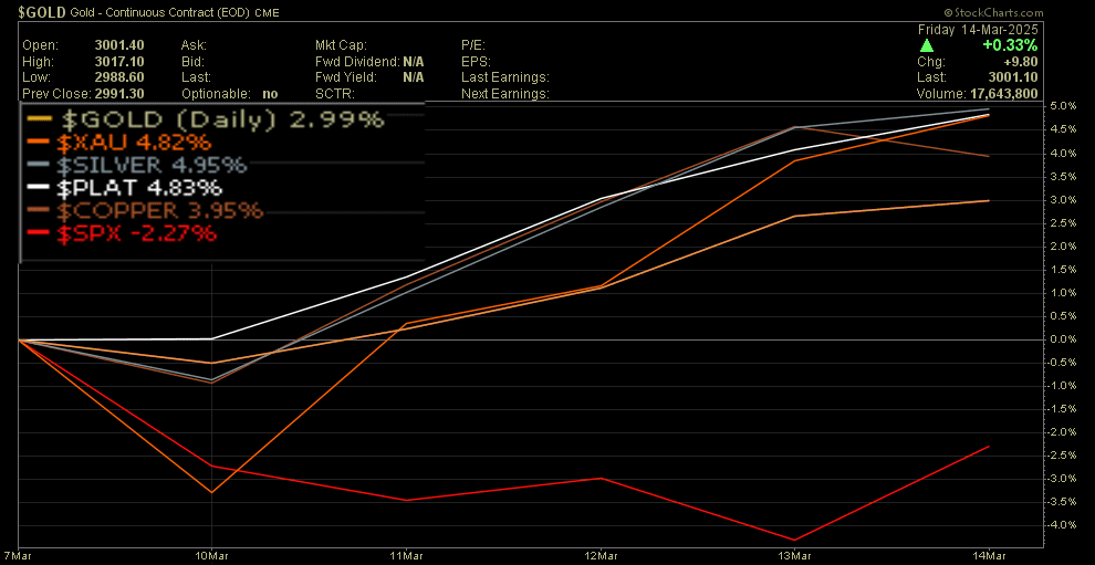 Es liegt eben auch daran, dass Gold als einziges Edelmetall geliefert hat..... vor allem Silber enttäuscht mich immer wieder... Ab und zu ein Zwischenspurt, Silberaktien, vor allem die Winzlinge, dann mit riesigen Avancen in kurzer Zeit, danach wieder tote Hose. Ich erhoffe mir nun einen Spurt bei den Silbernen.....