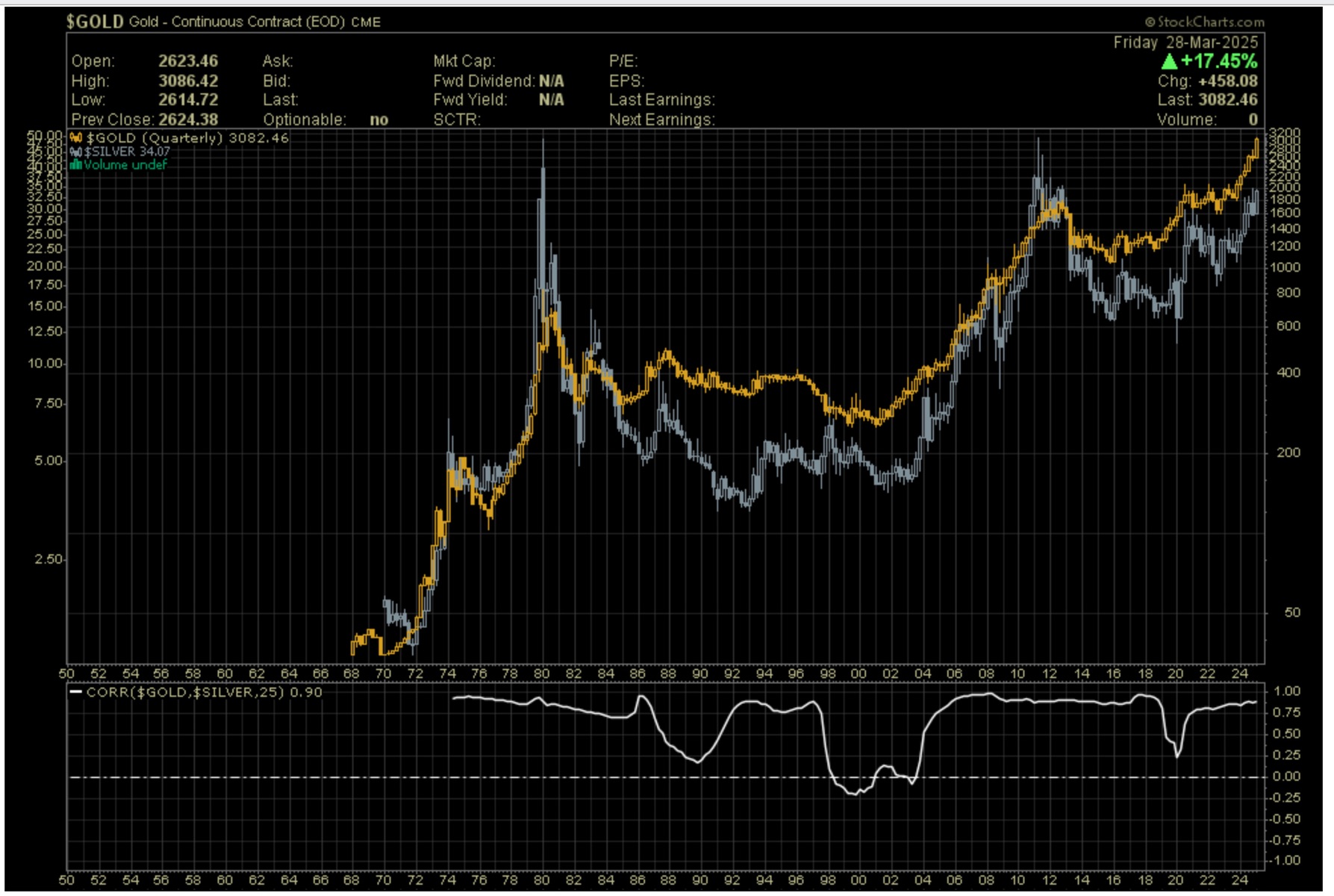Für keinerlei fundamentalen Zusammenhang ist die Korrelation von Silber zu Gold aber ziemlich hoch.