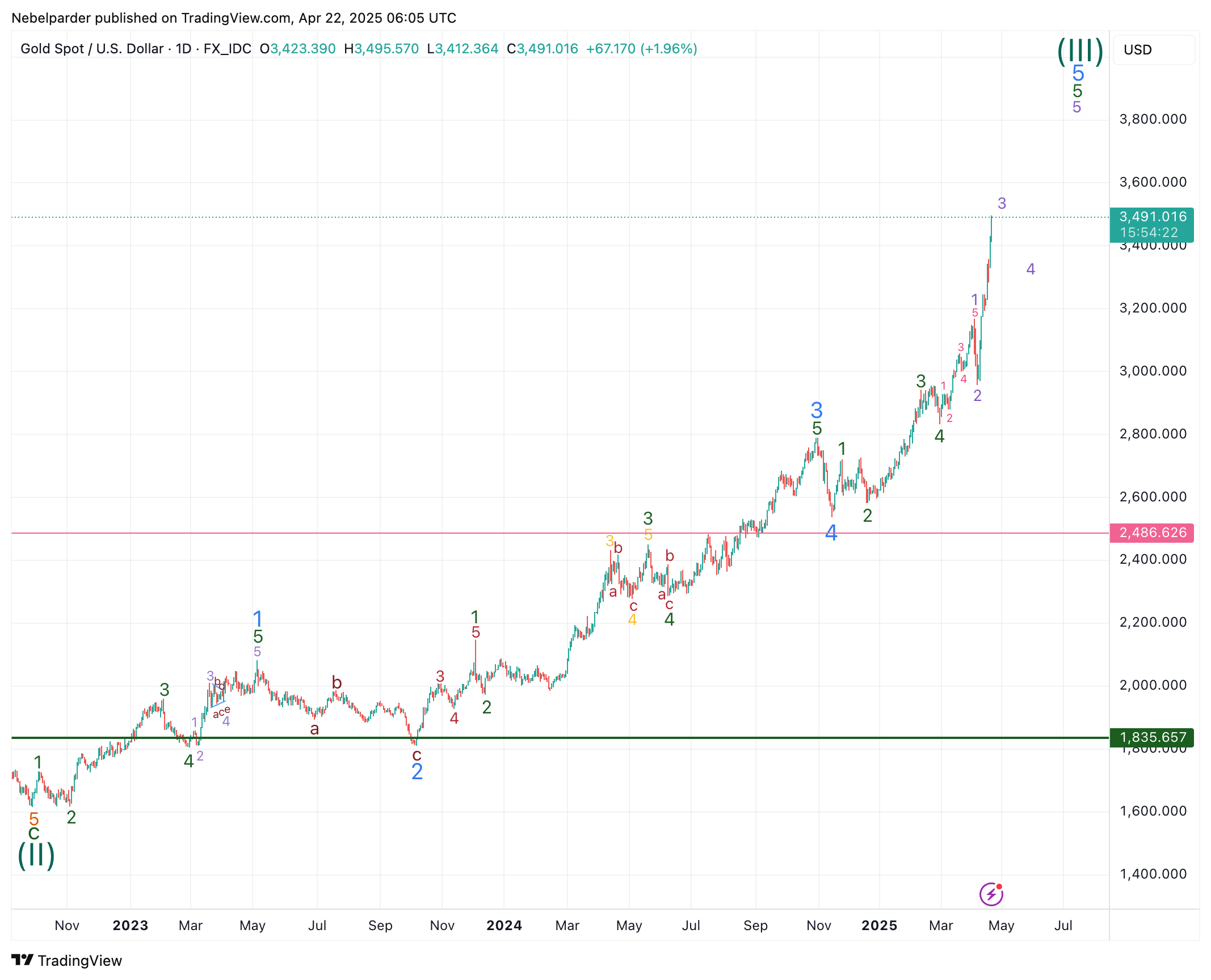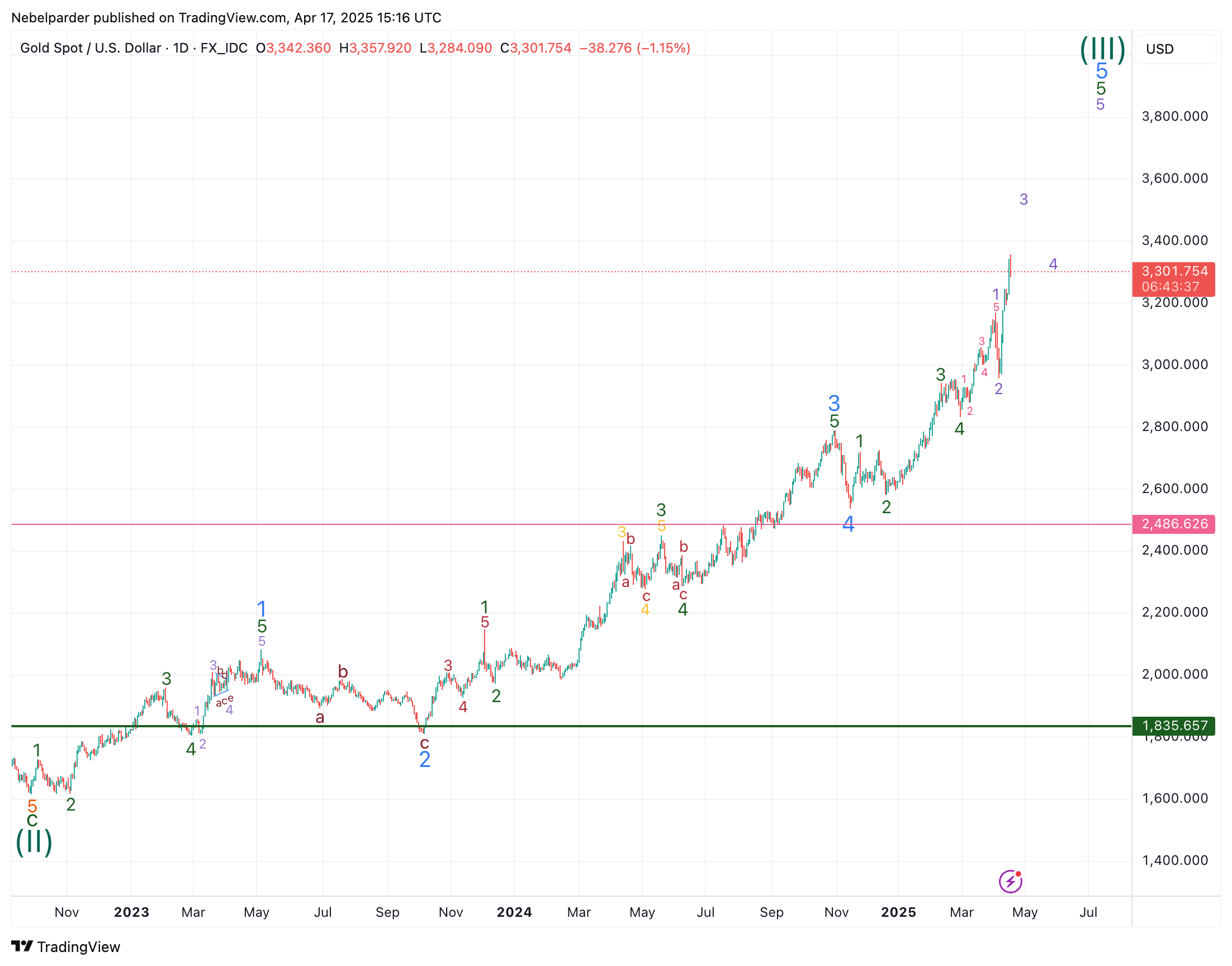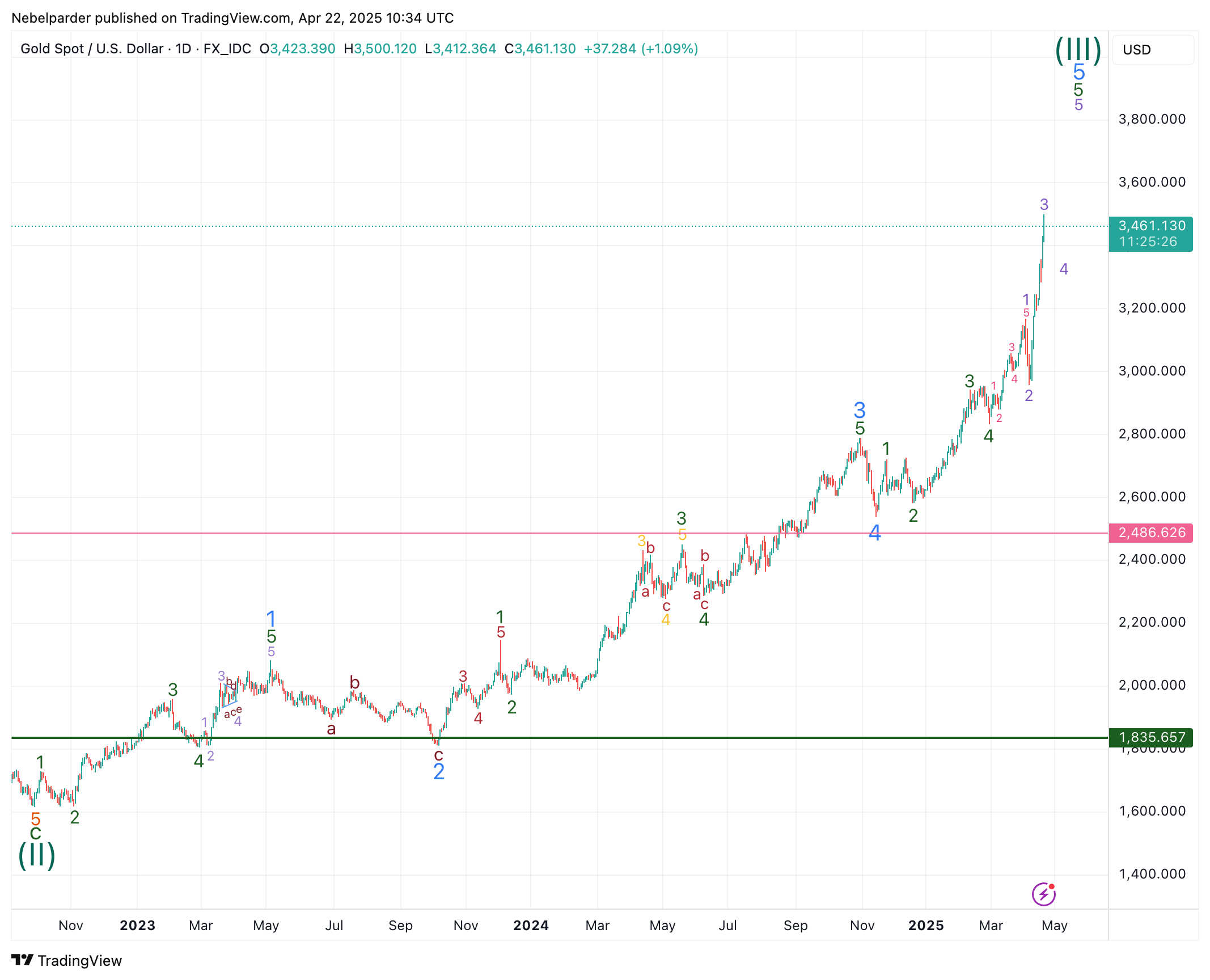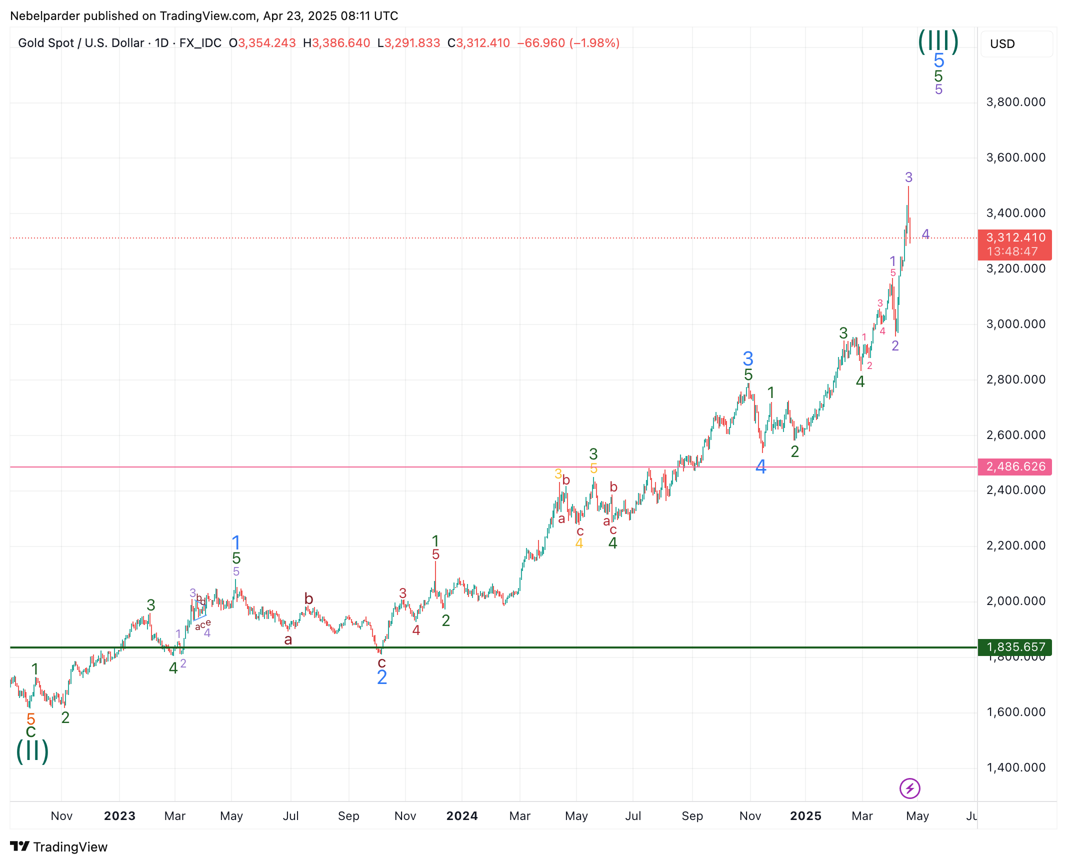Zitat von ArmstrongDas würde ein Hoch bei 3500 $ in der Woche vom 21. April bedeuten, mit einem zweiwöchigen Rückgang in die erste Maiwoche, wo ich mir große Sorgen über die Aussicht auf einen Krieg oder eine falsche Flagge bis Mitte Mai mache.