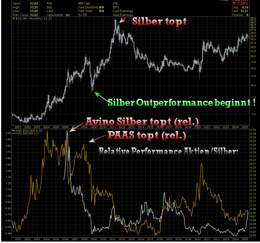 Wie schön zu sehen ist. beide , gilt auch für die meisten anderen (Ausnahme tatsächlich First Maj.) für die ich geschaut habe, haben deutlich VOR Silber (relativ) getopt. Sprich : Silber war in dieser finalen Phase das DEUTLICH bessere Vehikel als Aktien.