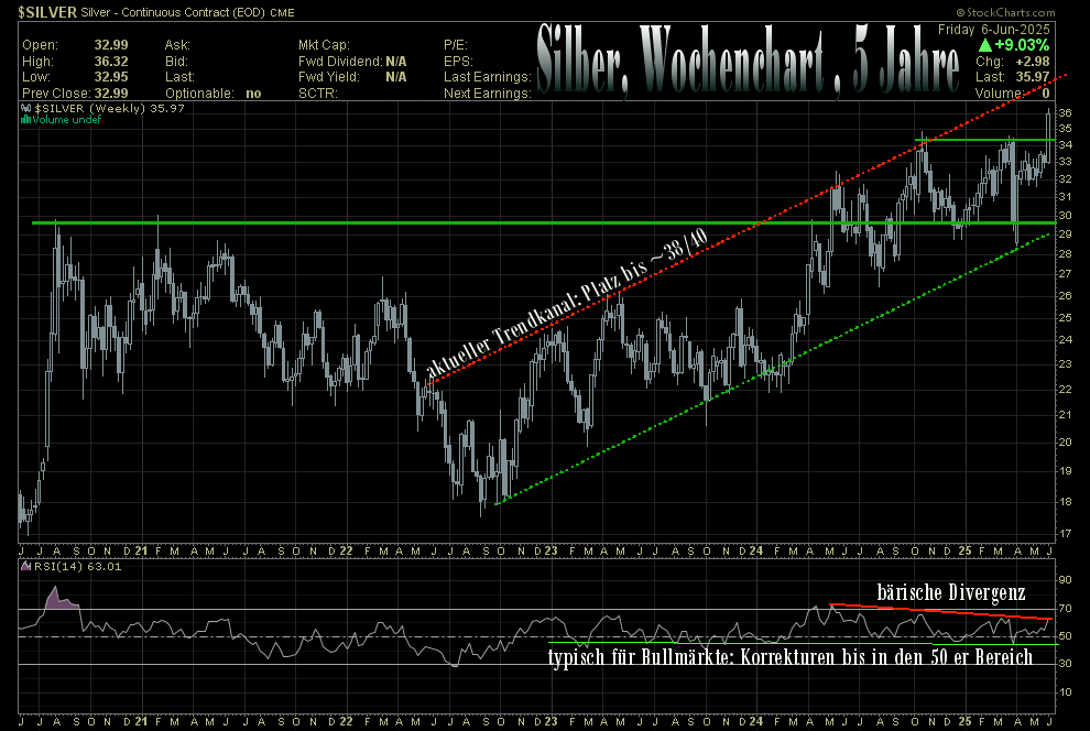 Allerdings mache ich trotzdem erst in Gold und vor allem Silber. Die Geschichte trotz der hohen Stände ist noch nicht zu Ende. Da kommt noch was, und das in diesem Jahr.