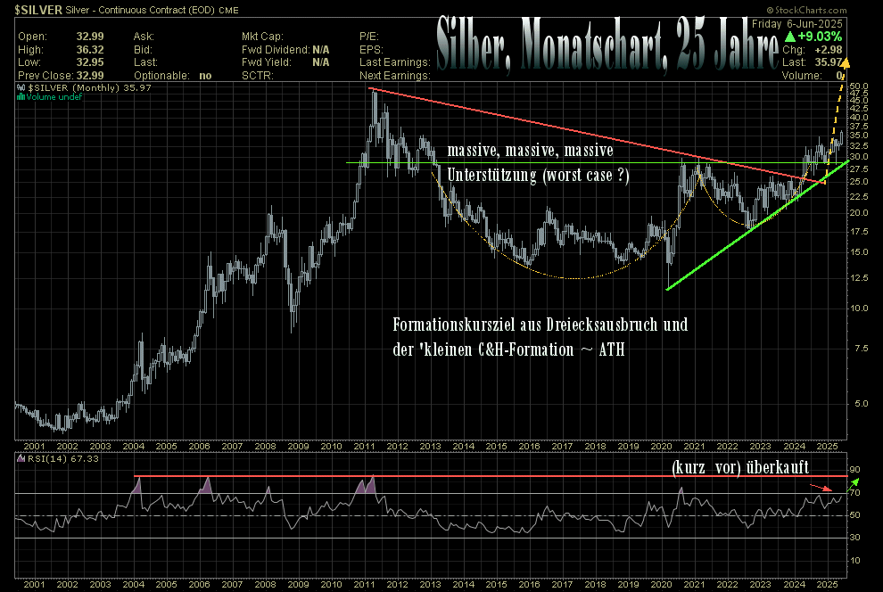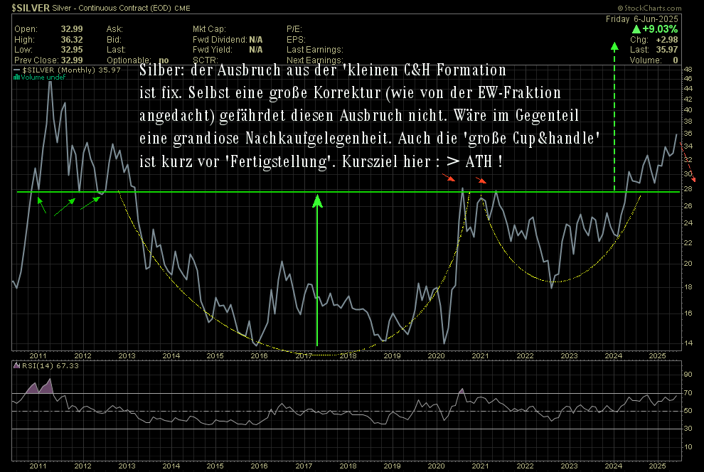 Allerdings mache ich trotzdem erst in Gold und vor allem Silber. Die Geschichte trotz der hohen Stände ist noch nicht zu Ende. Da kommt noch was, und das in diesem Jahr.