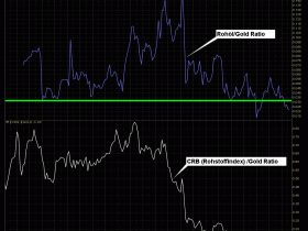 Tatsächlich sehen wir ja im obigen Chart drei Indikatoren, nämlich die zwei gleitenden Durchschnitte und als dritten den "Streß-Indikator für das internationale Finanzsystem", stellvertretend durch den Goldpreis dargestellt.