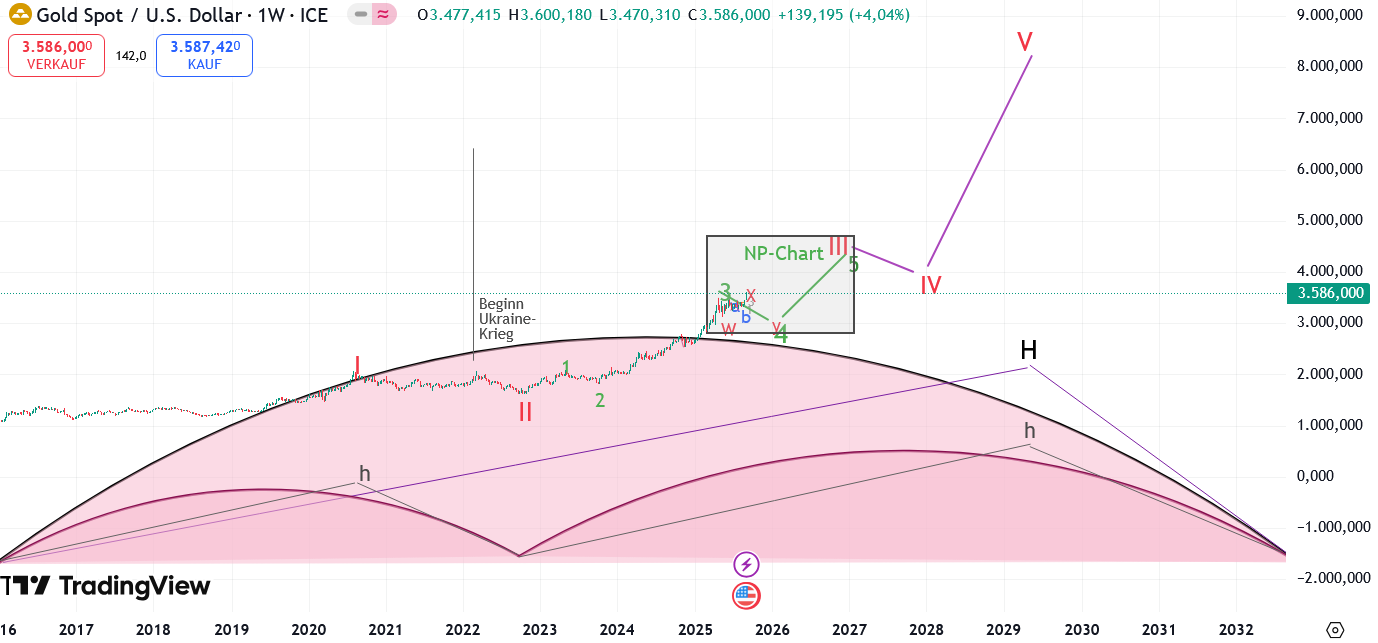 Also gehe ich von einem laufenden gedehnten Goldzyklus seit Herbst 2022 bis ca. Herbst 2032 aus