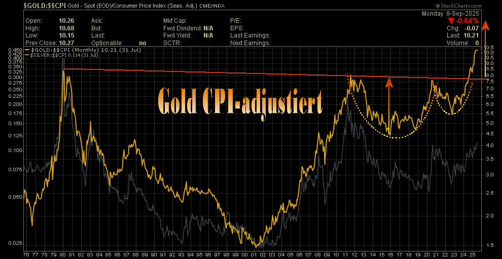 meinem Gefühl nach kommt der Goldkurs auch noch mal in den 3.450er Bereich zurück, um einerseits das Ausbruchsniveau der vergangenen Monate zu testen und dabei das Gap vom Labor-Tag zu schließen.
