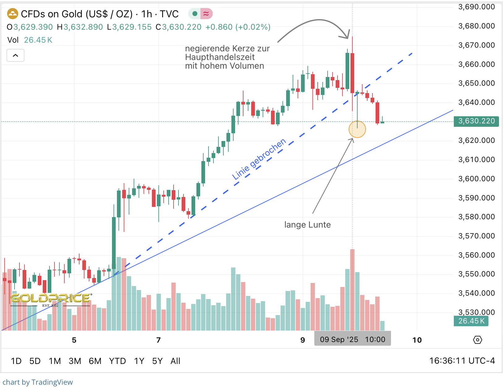 • Heute scheint das Ding mMn im Kasten zu sein - also das vorläufige Top in Gold.