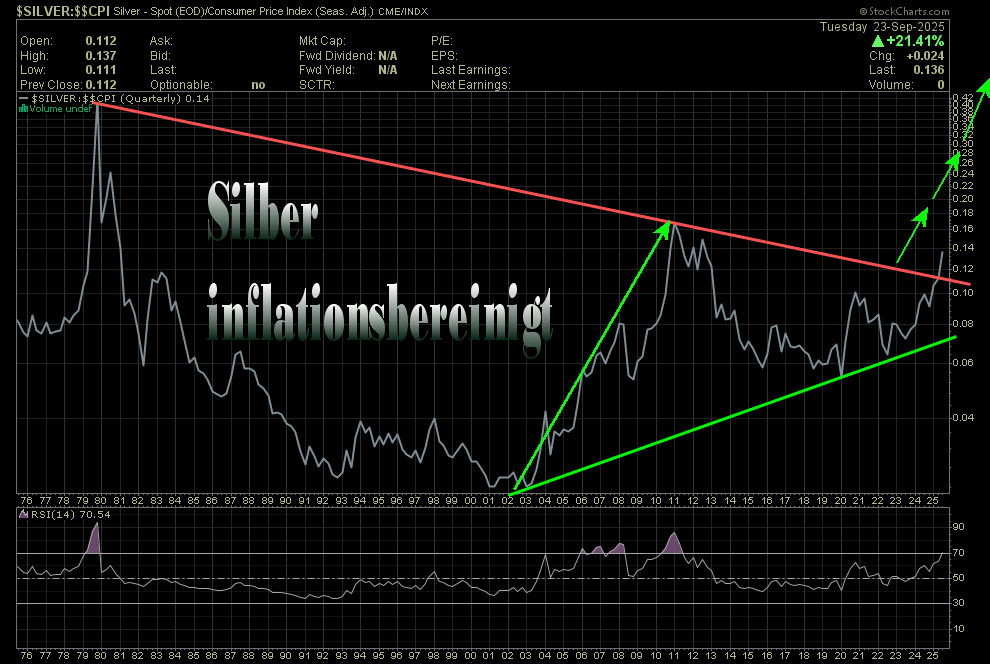 Bricht man es inflationsbereinigt auf die Geldmetalle Au und Ag herunter, haben nur die Top 10 Netto einen Zuwachs geschafft, der Rest hat verloren, teils sogar recht signifikant. Vor 100 Jahren hätte man nicht von globaler Rezession gesprochen sondern von einer nicht unerheblichen Depression.