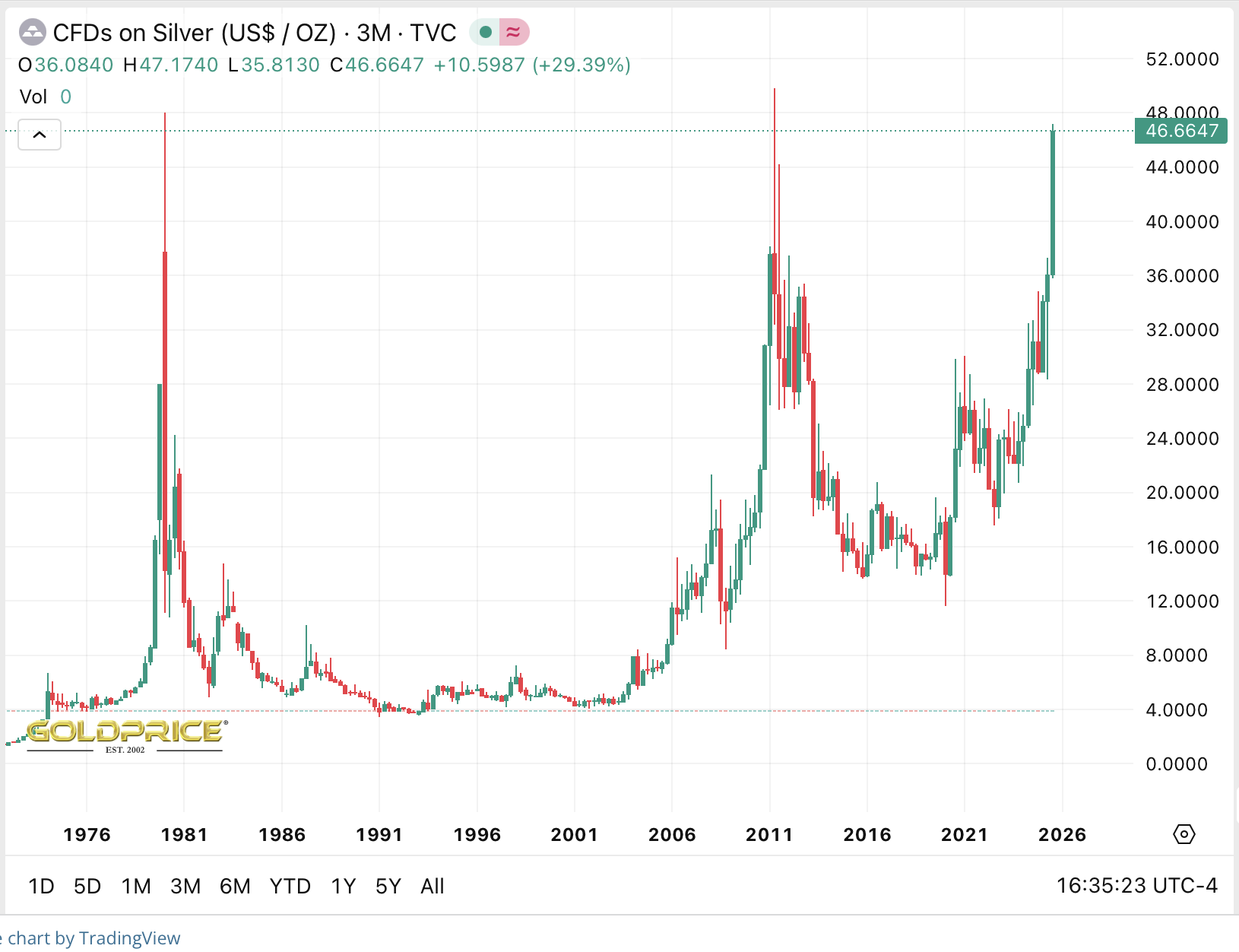 Ich rechne ja eigentlich mit einer etwas längeren Konsolidierung , vielleicht ein, zwei Monate.Exemplarisch : Silber. Wichtig die mittel- und langfristigen Kursziele nicht aus den Augen verlieren. Müssen ja nicht die zwei, drei , vier-dausend der Malloneys & Co sein…aber gut 3-stellig wird‘s werden. Isch schwöre ! ![]()