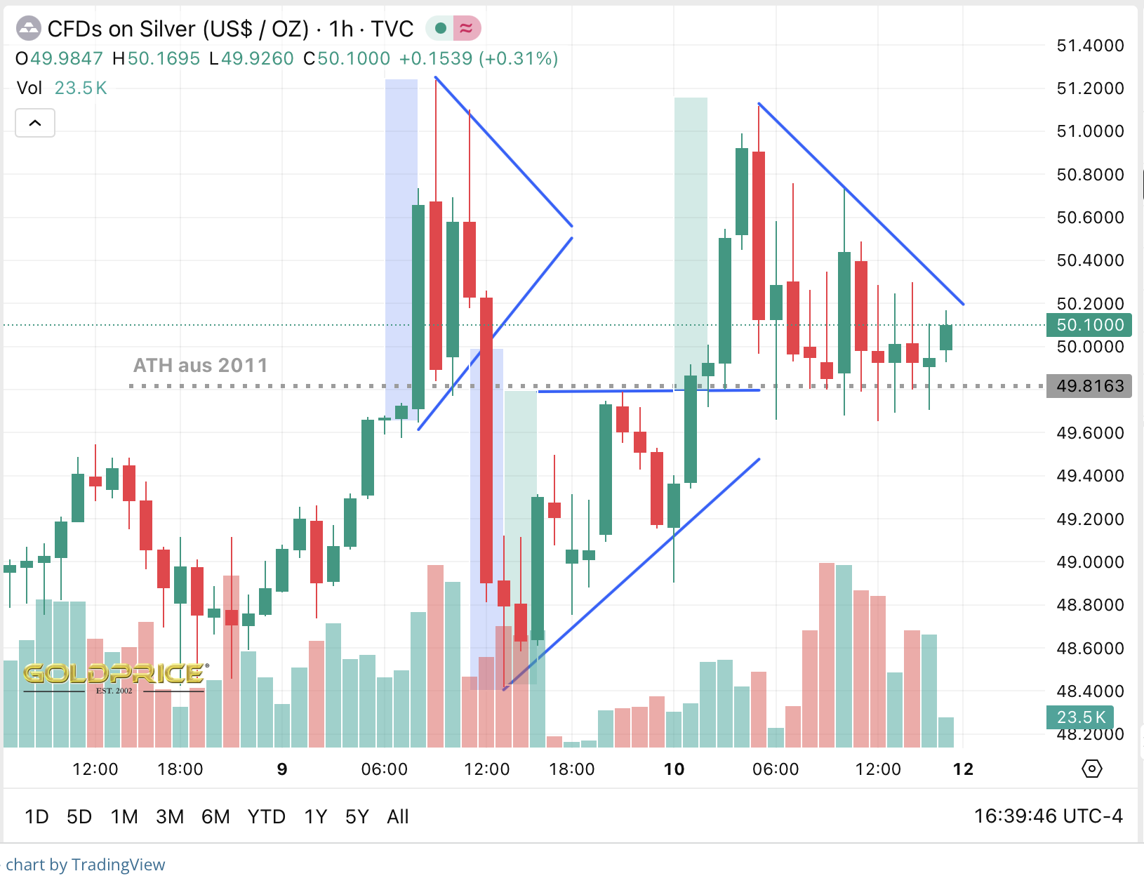 Der heutige Tag war für mich mega spannend: Der Markt hat die 50 bei Silber gesehen (und die 4.000 bei Gold). Was bleibt vom Tage? Ein fulminanter Docht.