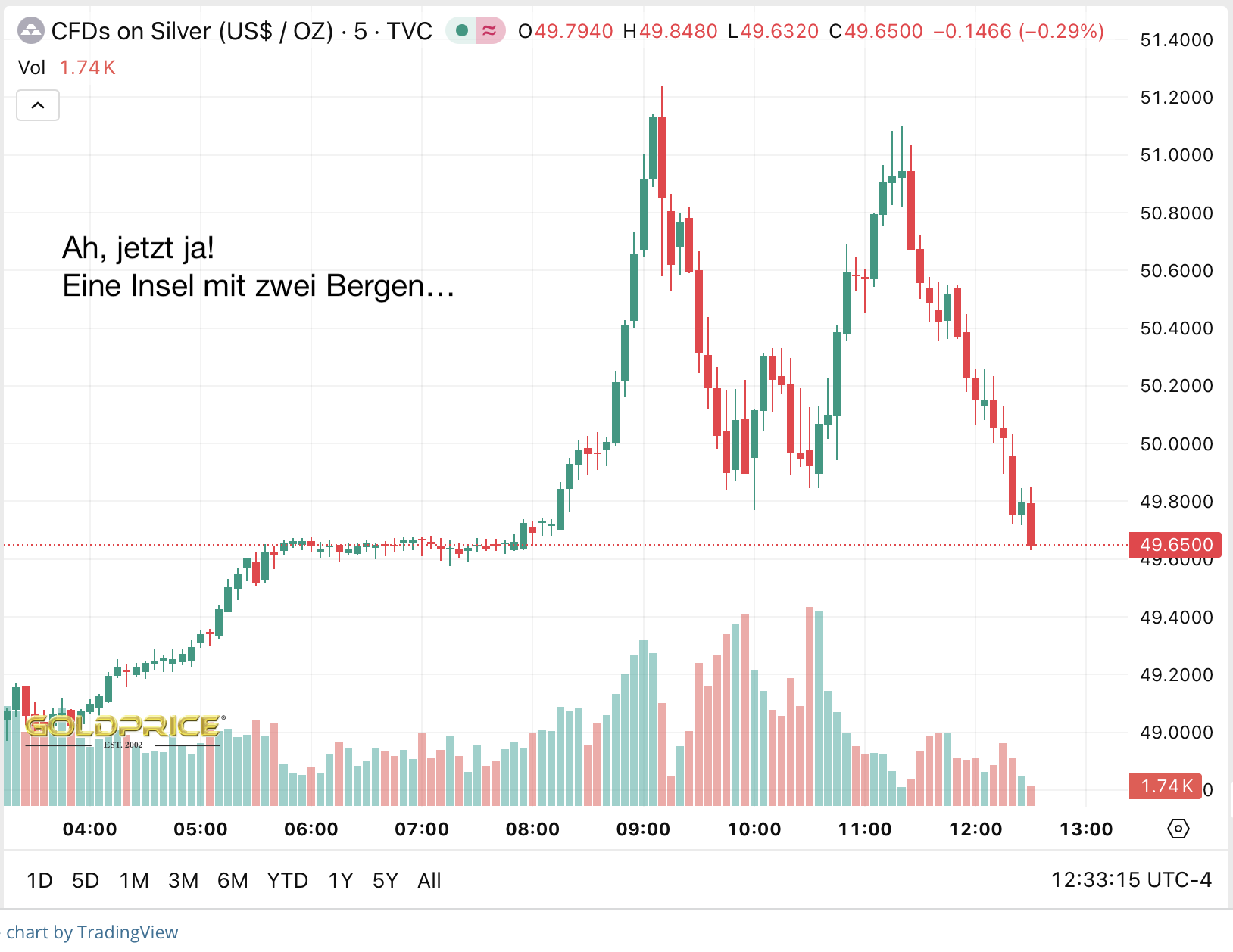 War aus psychologischer Sicht klar und der logische Weg nennenswerte Verkäufe zu triggern : ein heftiger Einschlag am (alten) AllTimeHigh. Haben wir hier vor Wochen nicht immer wieder gehört…Silber performt nicht…Silber raus…wenn wir wieder in die Nähe von ~ 50 kommen schmeiß ich den Plunder raus ! Etc. etc…..Alle die spät gekauft haben, um und kurz nach 2011, lange auf Verlust oder ’nur‘ auf entgangenen Gewinnen gesessen haben, haben nur darauf gewartet einigermaßen schadensfrei und gesichtswahrend aus der Nummer raus zu kommen. Durch den Kursverlauf der letzten Wochen, den kräftigen Anstieg, die Spekulationen über Knappheit, Paradigmenwechsel, Neubewertung könnte viele verkaufswillige ’Alt-Spekulanten‘ zum Umdenken und zum Hoffen auf weitere Zugewinne animiert haben. Doch : nein ! Jetzt schnappt die Falle zu.