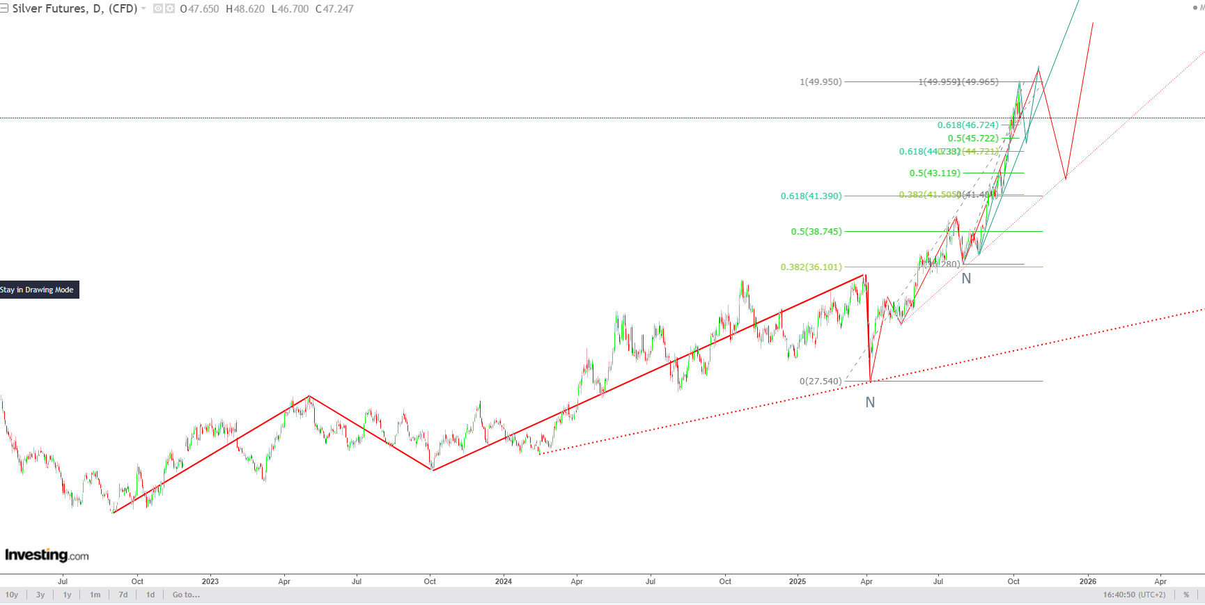 War aus psychologischer Sicht klar und der logische Weg nennenswerte Verkäufe zu triggern : ein heftiger Einschlag am (alten) AllTimeHigh. Haben wir hier vor Wochen nicht immer wieder gehört…Silber performt nicht…Silber raus…wenn wir wieder in die Nähe von ~ 50 kommen schmeiß ich den Plunder raus ! Etc. etc…..Alle die spät gekauft haben, um und kurz nach 2011, lange auf Verlust oder ’nur‘ auf entgangenen Gewinnen gesessen haben, haben nur darauf gewartet einigermaßen schadensfrei und gesichtswahrend aus der Nummer raus zu kommen. Durch den Kursverlauf der letzten Wochen, den kräftigen Anstieg, die Spekulationen über Knappheit, Paradigmenwechsel, Neubewertung könnte viele verkaufswillige ’Alt-Spekulanten‘ zum Umdenken und zum Hoffen auf weitere Zugewinne animiert haben. Doch : nein ! Jetzt schnappt die Falle zu.