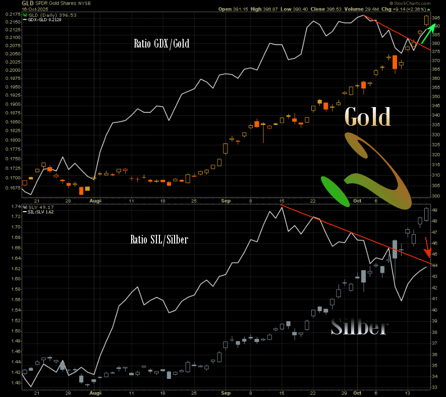 Deshalb nochmal der Hinweis auf nicht zu unterschätzende Divergenz zwischen der Performance der Minen ggü. den Metallen: