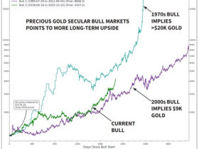 Zum Stichwort "luftleerer Raum" beim Goldpreis, habe ich nach Fibo-Extensionen gesucht und eine Pausible gefunden.Die Strecke vom Tief der 90er Jahre bis zum ersten Hoch 2011 habe ich an das Tief von 1050 USD aus dem Jahr 2015 angelegt und finde nun eine verdoppelte Strecke an fast exact der 100er Extension. Silber mache ich heute abend, der Rasen ruft...wächst wie der Goldpreis dies Jahr.