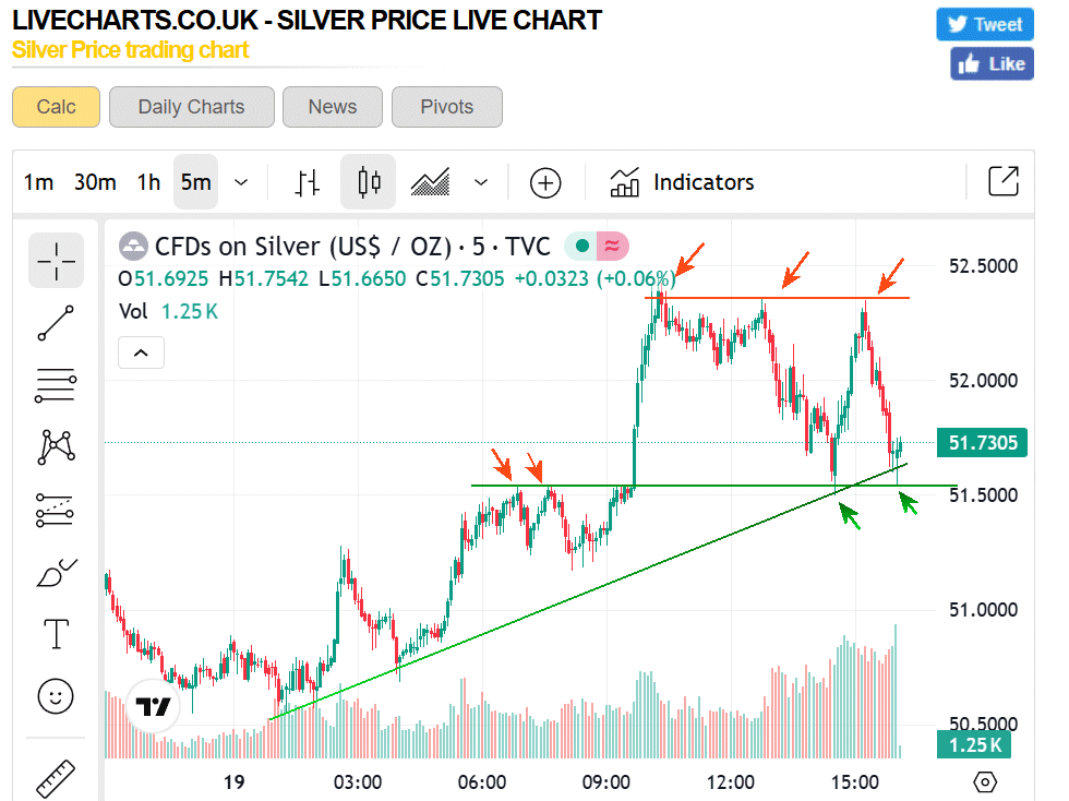 Wunderschönes Beispiel für Widerstand und Unterstützung im 5 Minuten Chart: