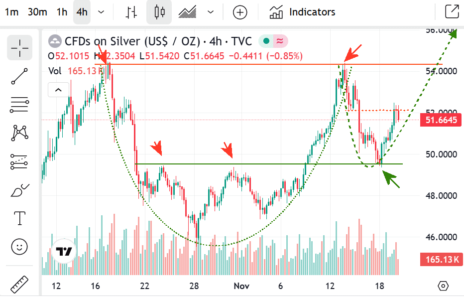 ...und hier die 'entstehende' oder eben 'nicht entstehende' Cup & handle im 4 Std.-Chart: