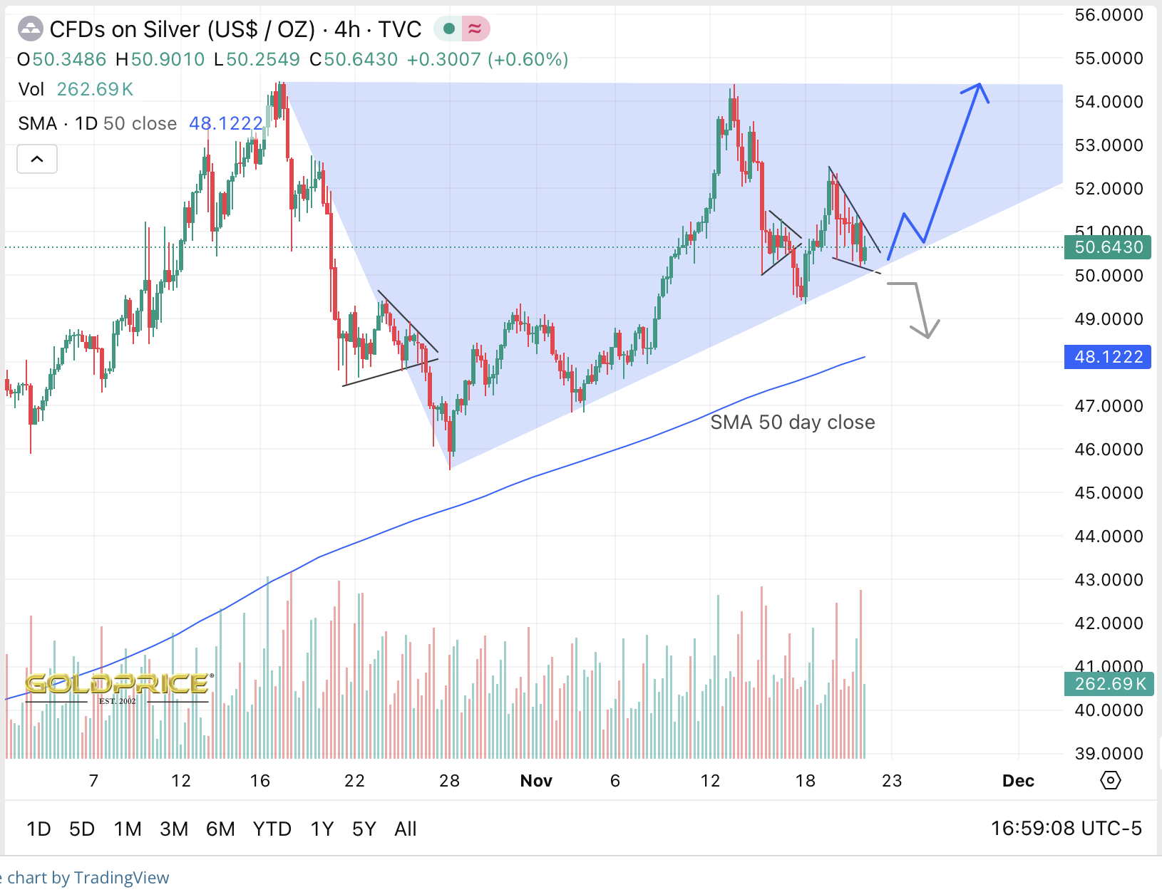 Gut beobachtet ! Aber um diese Formation wird noch gestritten. Auch die Jungs an der Comex und an der LBMA und, und, und...verstehen was von Charttechnik !
