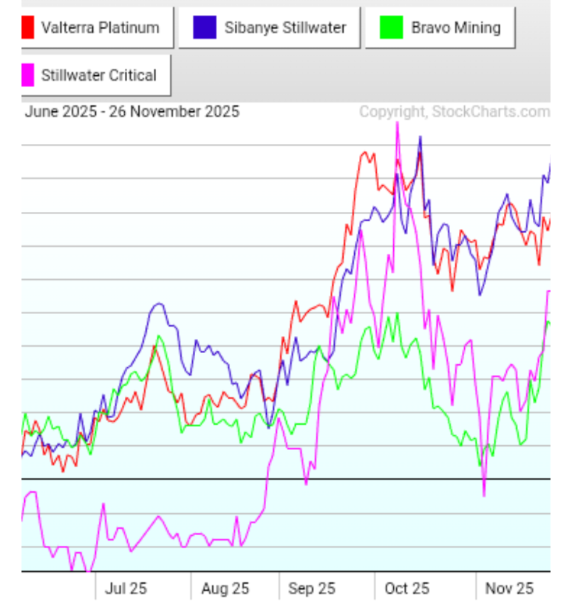 Mich hat das Verhalten der PGM-Aktien interessiert, weil ich statt der verpassten SBSW die Chance bei der Ausgliederung von Valterra ergriffen hatte. Außerdem hatte ich ein paar PGM-Explorer/Entwickler früh gekauft.