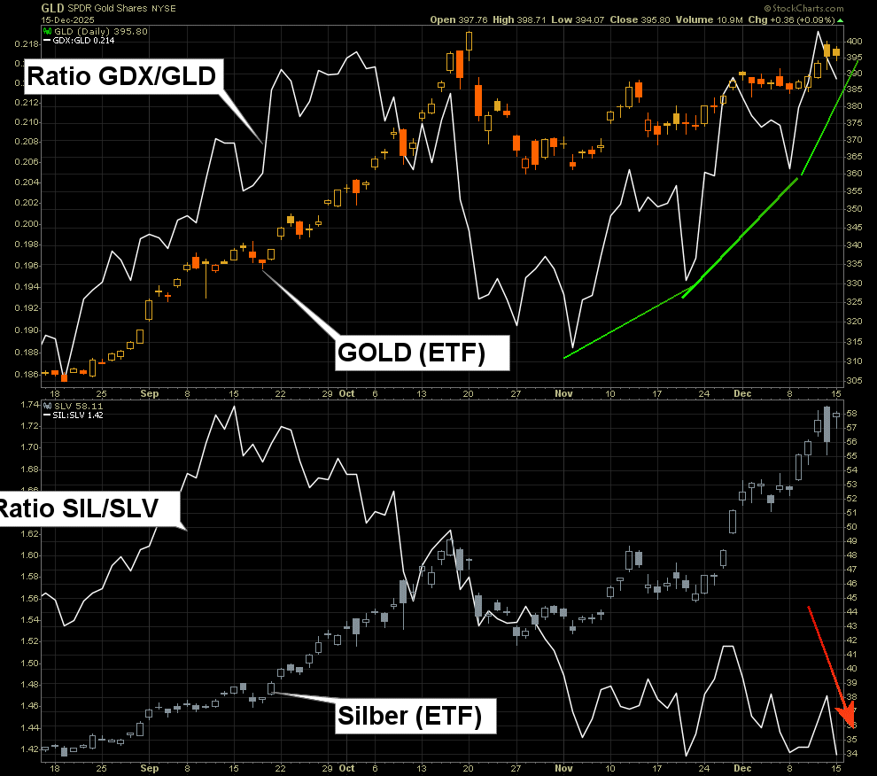 Während wir bei den Goldminern eine passable 'ratio-adjustierte' Performance sehen, haben wir bei den Silberminern trotz einem Silberpreis nahe All-timehigh quasi ein neues Jahrestief erreicht !