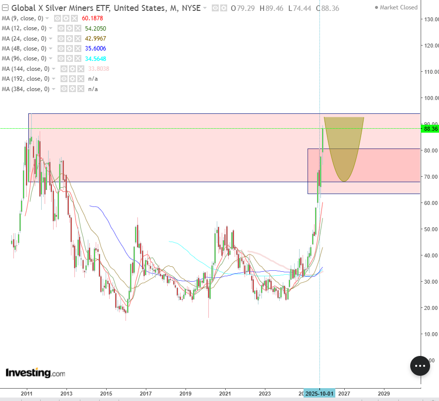 Der Knick ab Mitte September war primär eine technische/sentimentbedingte Korrektur nach dem Breakout plus strukturelle Minen-Nachteile, unabhängig vom späteren Preis-Crash. Der Oktober-Drop hat das nur beschleunigt und vertieft – Minenaktien leiden in Korrekturphasen immer stärker. Langfristig (bis Dez 2025) hat SIL trotzdem stark performt (~+158 % YTD), aber mit Phasen der Underperformance, wie typisch für den Sektor.