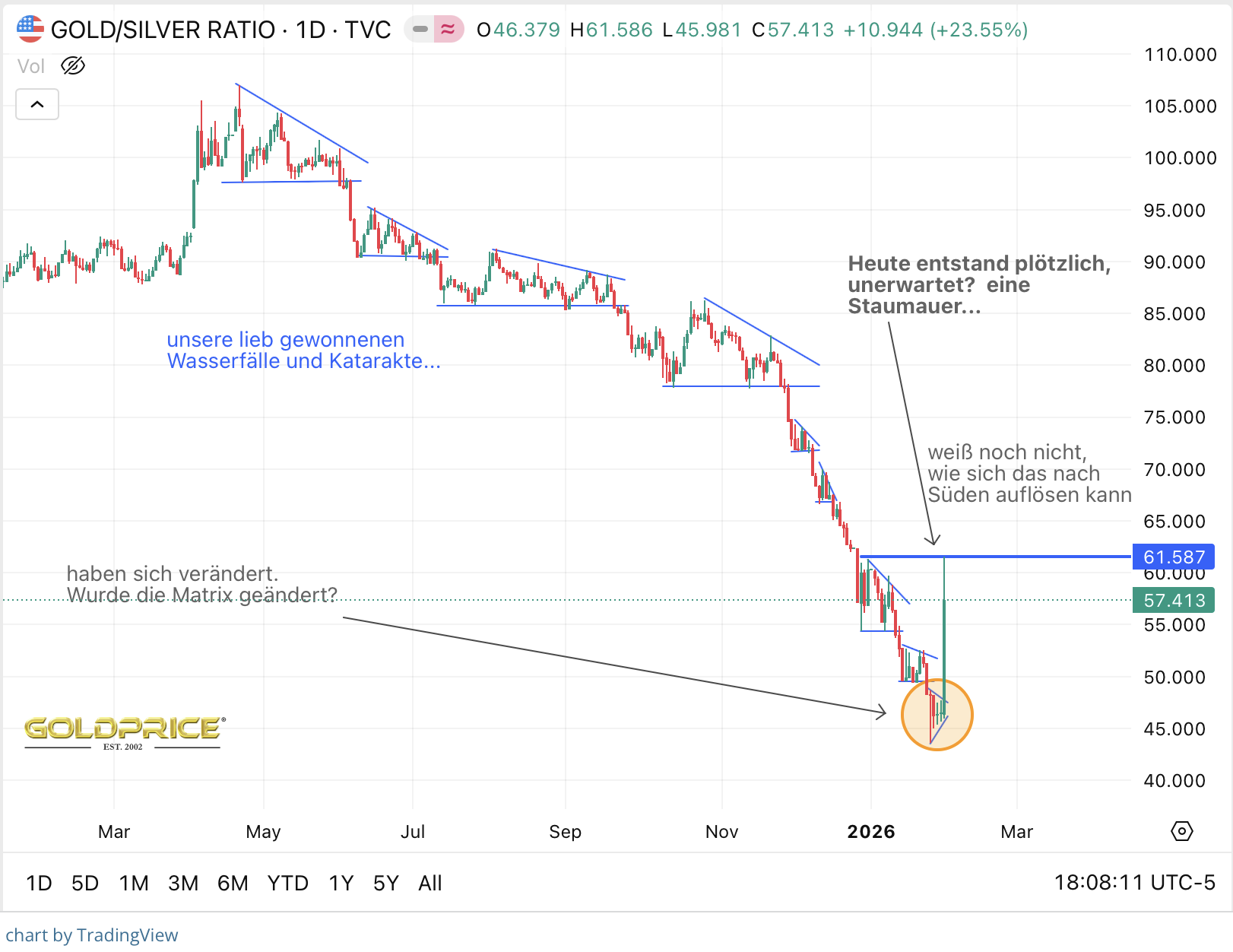 Falls es das jetzt oder etwas später erstmal gewesen sollte mit dem Bullrun insbes. beim Silber, würden wir das zB merken können an nachhaltigem GSR > 50:1