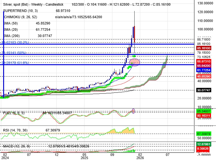 Bei rund 60 $ liegt im Wochenchart der SMA 20 und das RT 62 der gesamten Elliott 3 ab 18 $ gerechnet.