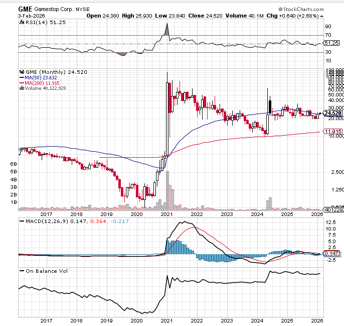 Und seit dem ist GME unter intensiver Kontrolle. Ab und zu muessen die kuenstlichen Shares wohl gerollt werden, dann schiesst der Preis hoch und dann fangen sie es wieder ein ..