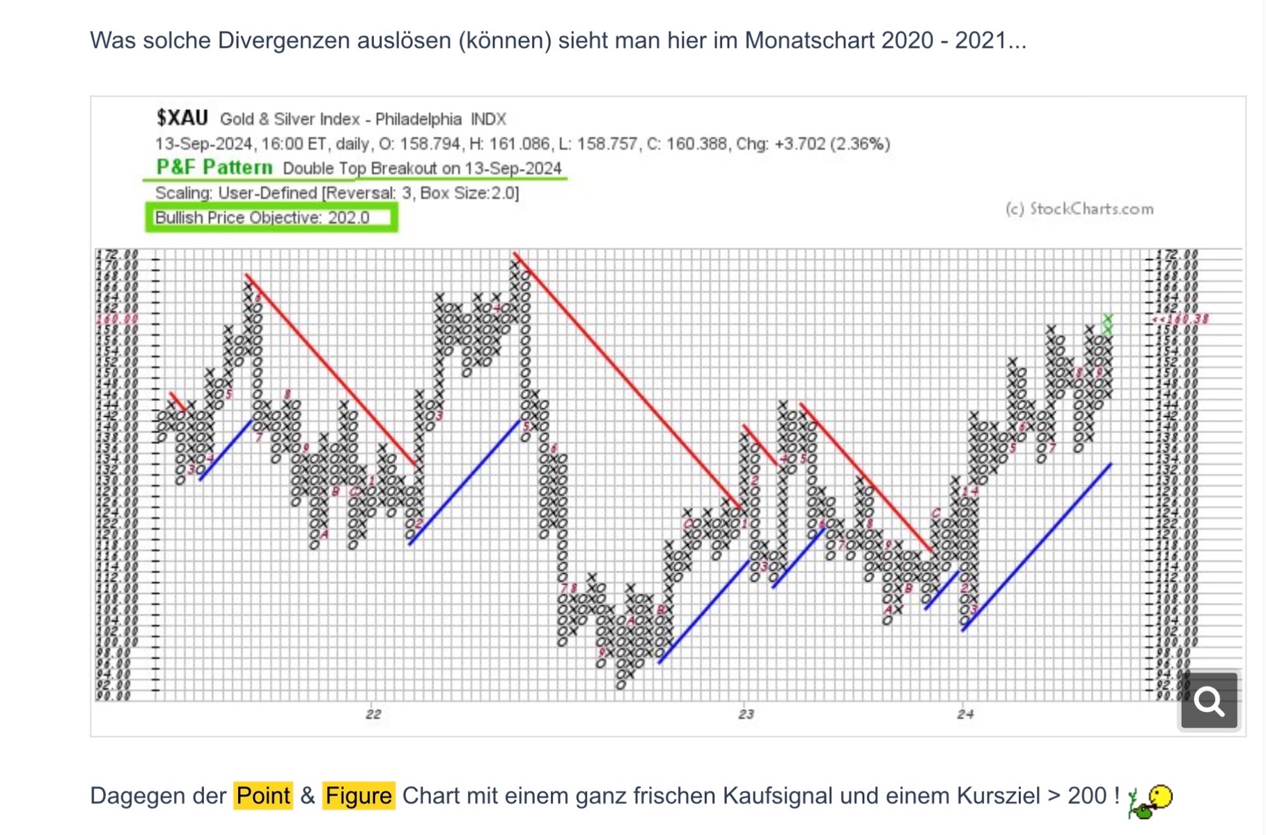 Während die Goldminen (relative Performance zum Goldpreis !!!) auf ein neues Hoch 'ausbrechen' (und neue Hochs bei Gold ankündigen ? ) , verbleiben die Silberminen auf einem Niveau, das dem von Silberpreisen um 20 bzw. 30 $ entspricht ! ( :/ :rolleyes: =O )